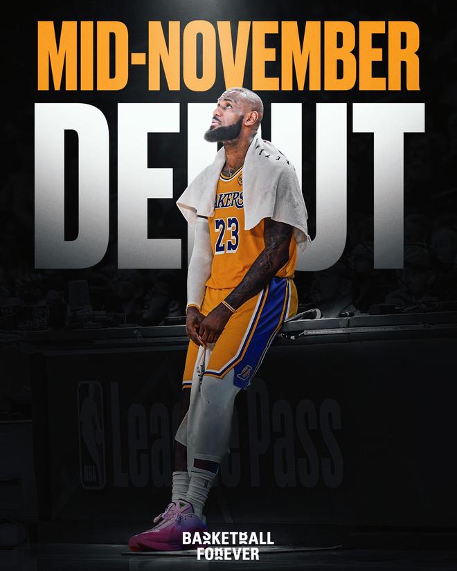 由于遭遇坐骨神经痛的困扰,詹姆斯不仅季前赛报销,而且还没有与球队进行合练,此前湖人官方称詹姆斯至少将休战3-4周;NBA匿名高管认为詹姆斯将缺席10月和11月的全部比赛,该高管认为詹姆斯最快要到12月才能复出。